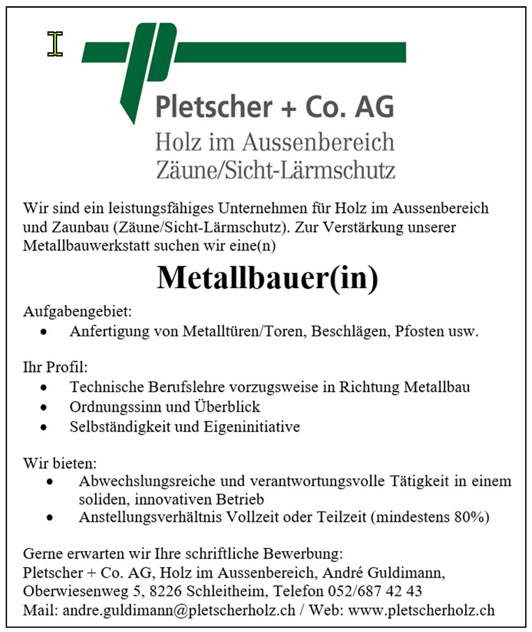 © Pletscher + Co. AG   |   Impressum   |   Datenschutzerklärung   |   GUT WERBUNG, Kreuzlingen