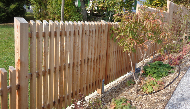 Der Sichtschutz aus Holz gewährleistet die Privatsphäre und ist in robuster, individuell gefertigter Qualität wie auch als Fertigprodukt erhältlich.