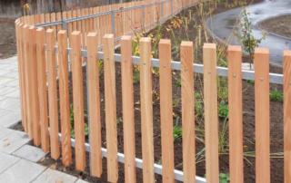 Holzzaun mit Stahltraversen